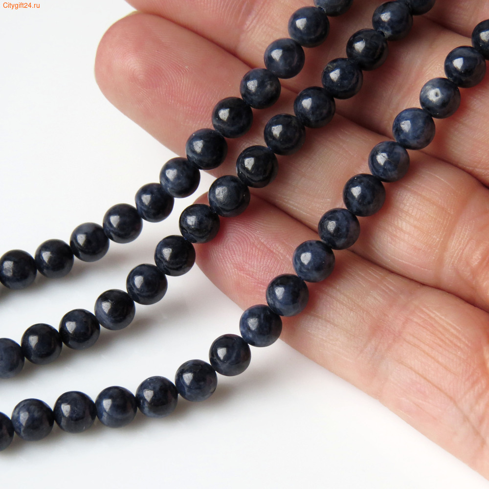 Бусина корунд натуральный (сапфир). Класс А. Форма шар.