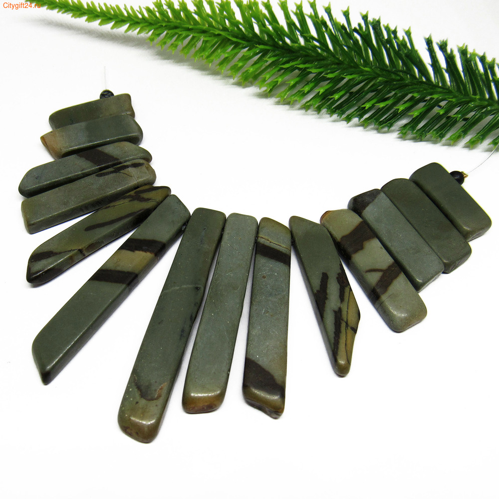 Размер: Нить 13,5 см. Бусины: длина 27~62 мм, ширина 9~10 мм, толщина ок. 5 мм