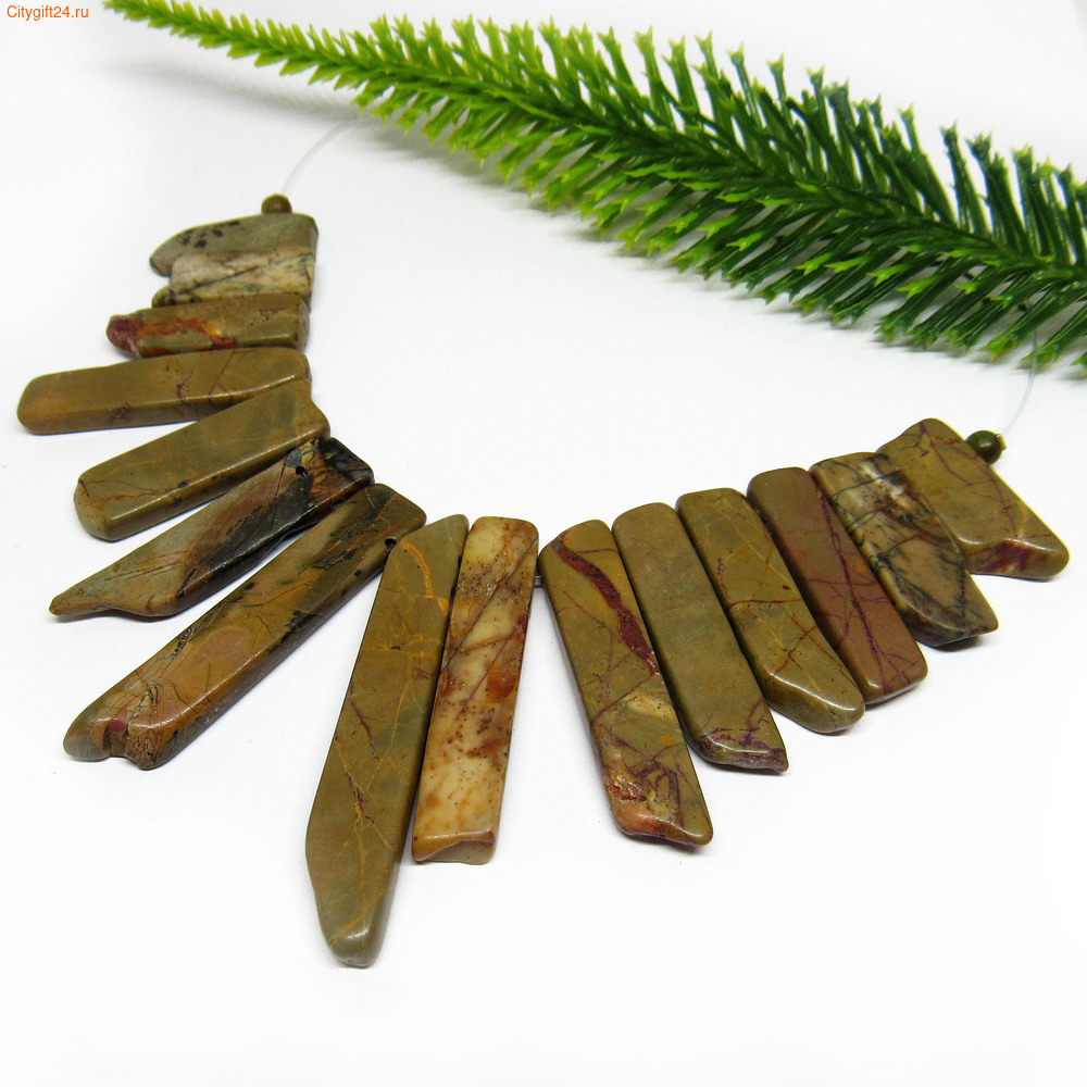Размер: Нить 14 см. Бусины: длина 23~54 мм, ширина 9~12 мм, толщина ок. 5 мм