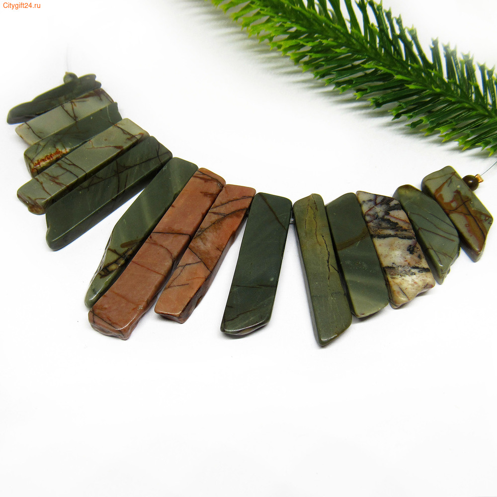 Размер: Нить 13,5 см. Бусины: длина 26~51 мм, ширина 8~12 мм, толщина ок. 5 мм