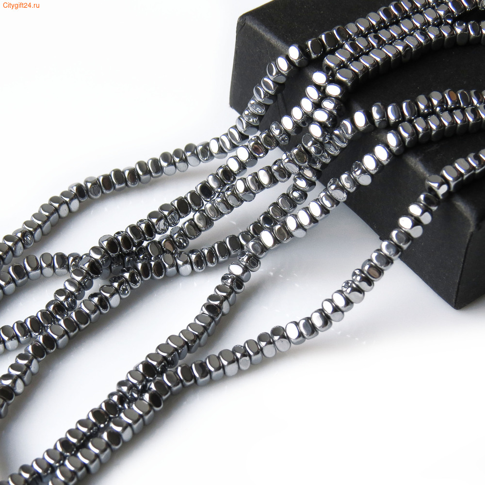 Бусина гематит (гематин), форма рондель (в срезе квадратный).