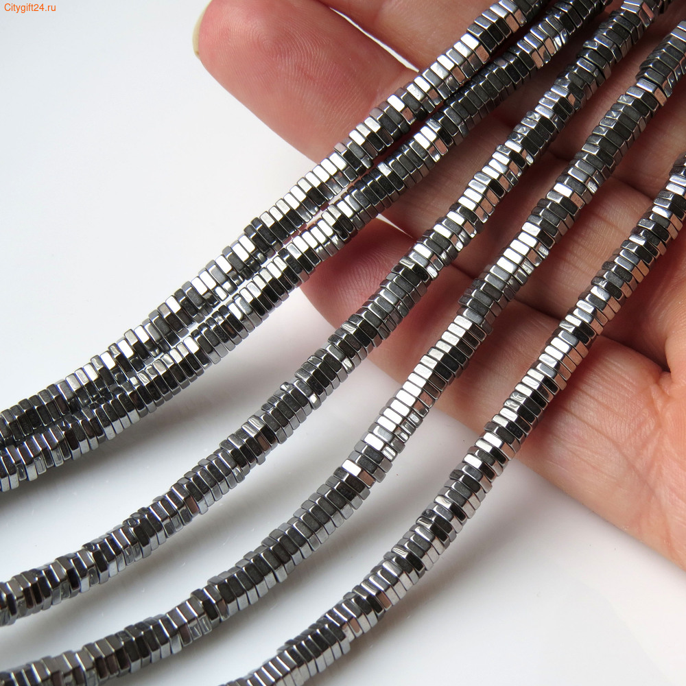 Бусина гематит (имитация), форма - рондель шестиугольный.