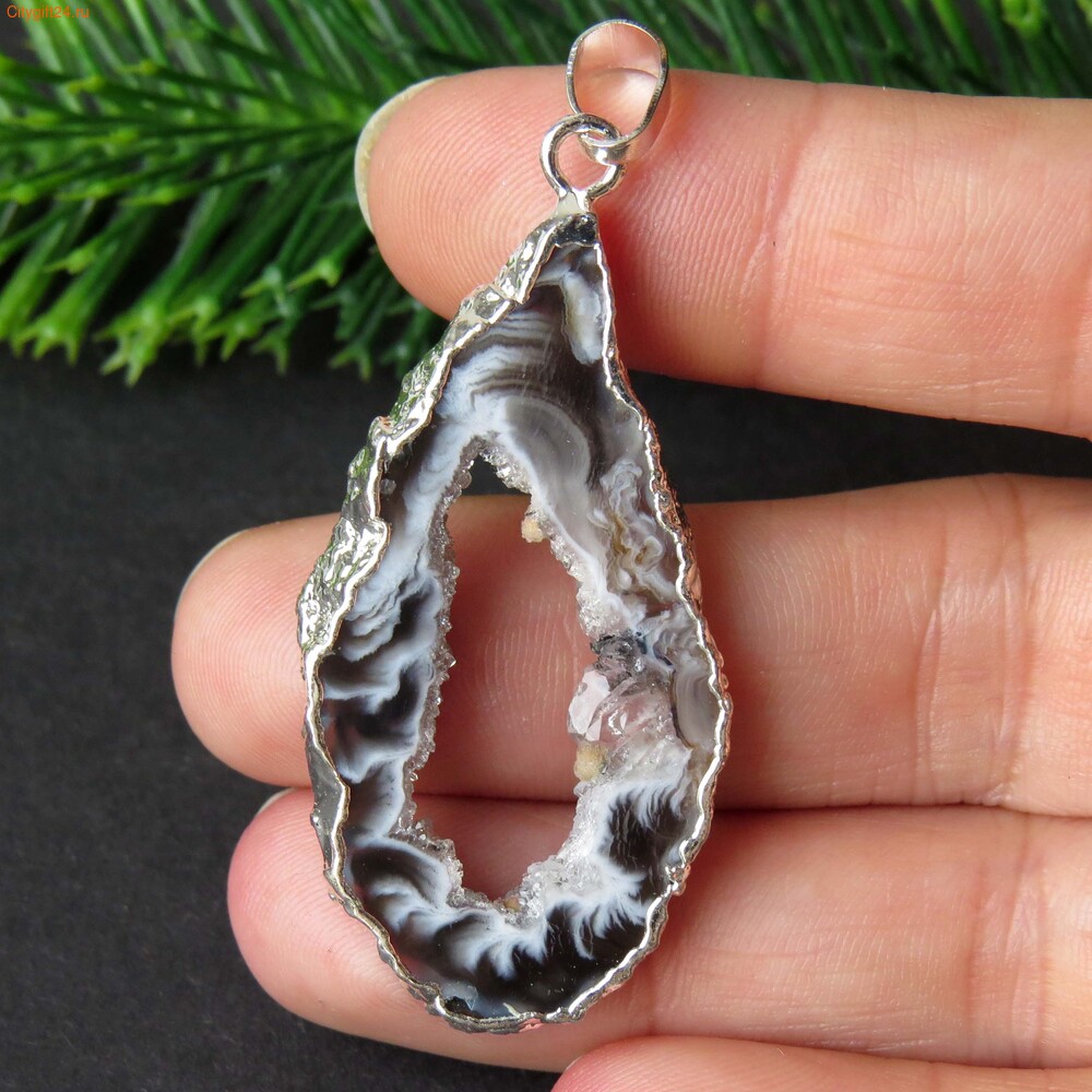 Подвеска бразильский агат с гальваническим покрытием серебристого цвета.