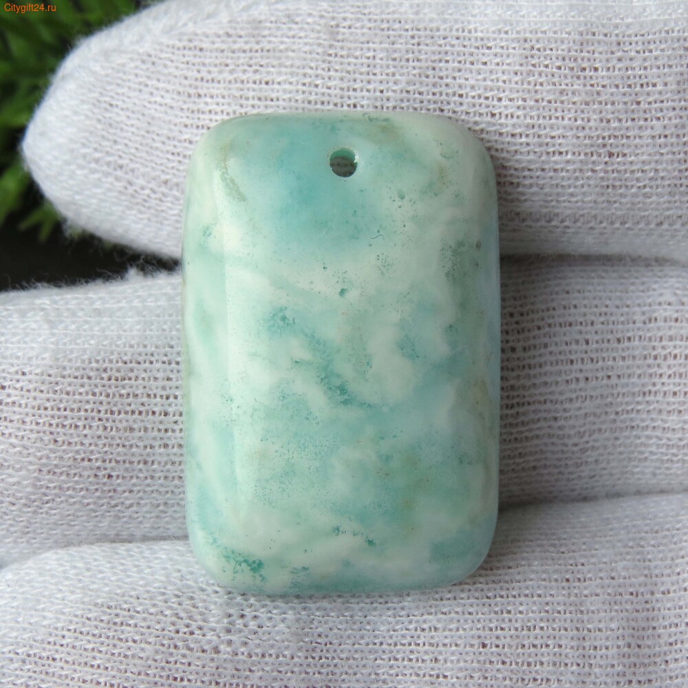 Подвеска голубой арагонит (часто продаётся под названием гемиморфит или ларимар).На поверхности камня могут присутствовать микровыемки, природные неровности.