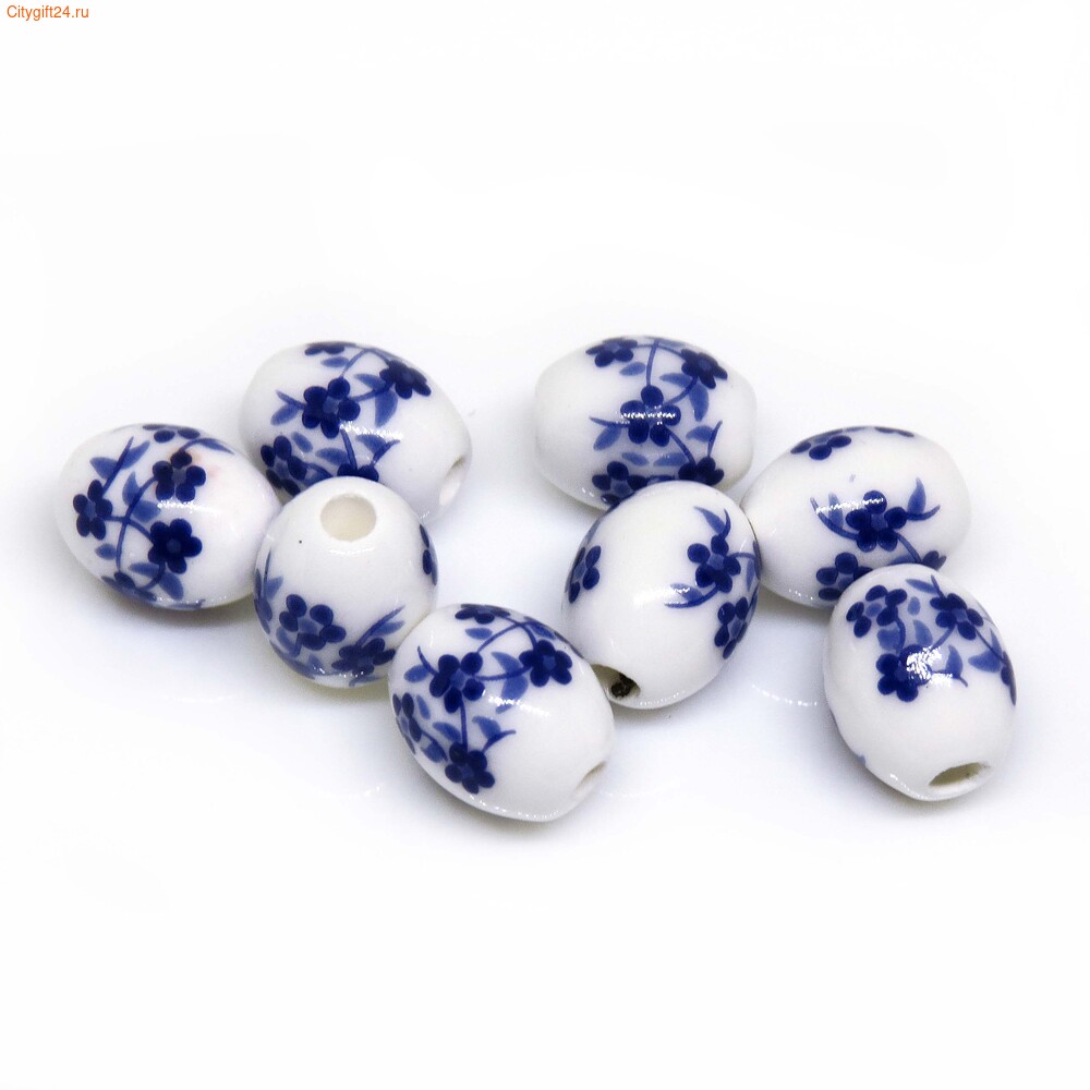 PH Бусина фарфоровая овал гжель 10*8 мм