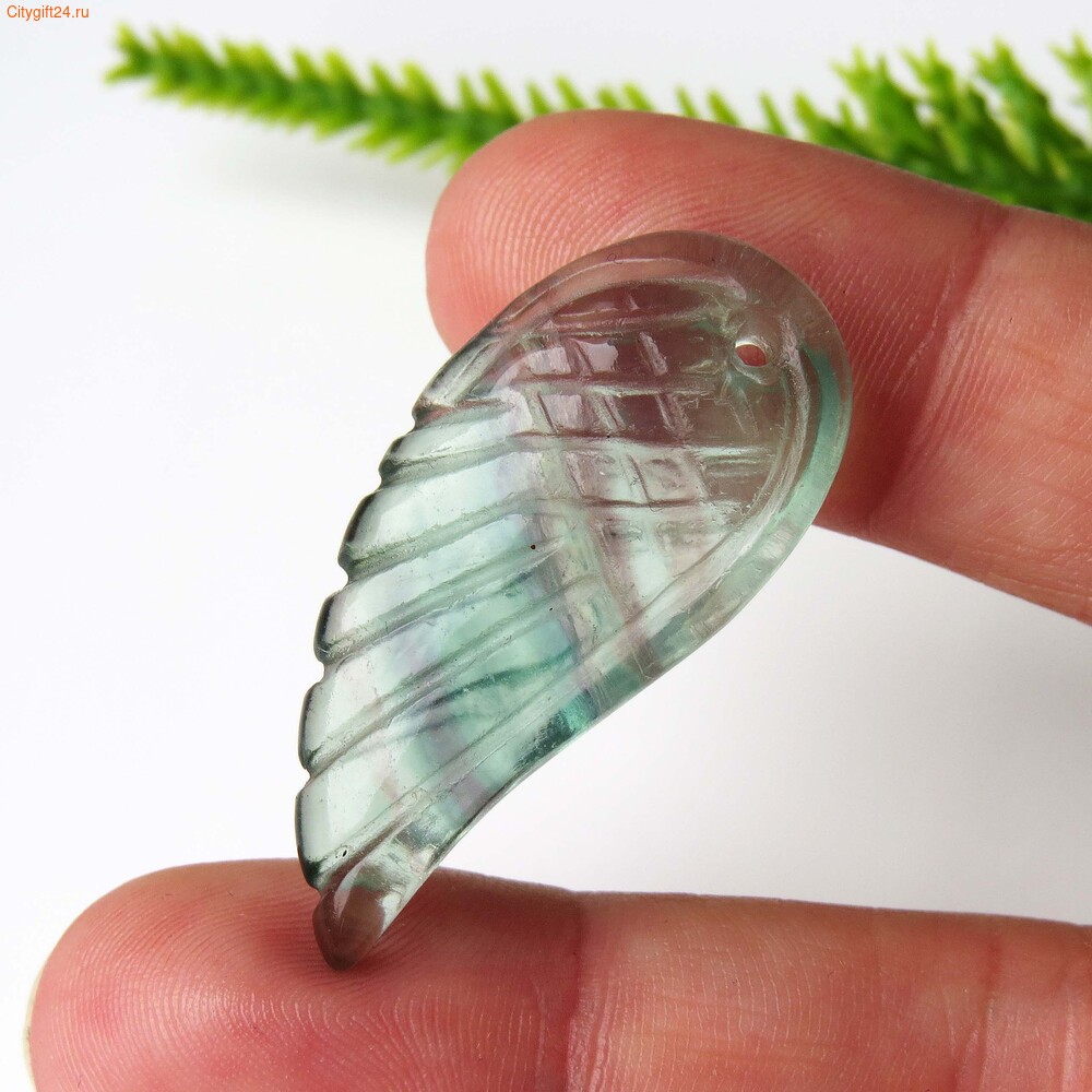 Подвеска резная из флюорита крыло. Резьба с двух сторон.