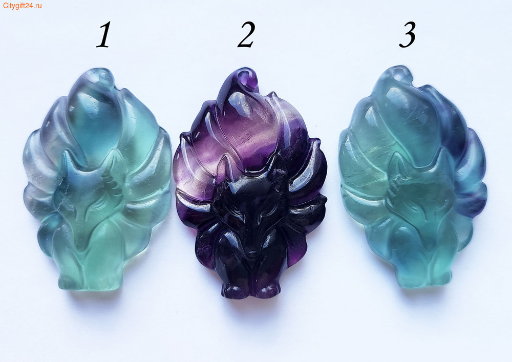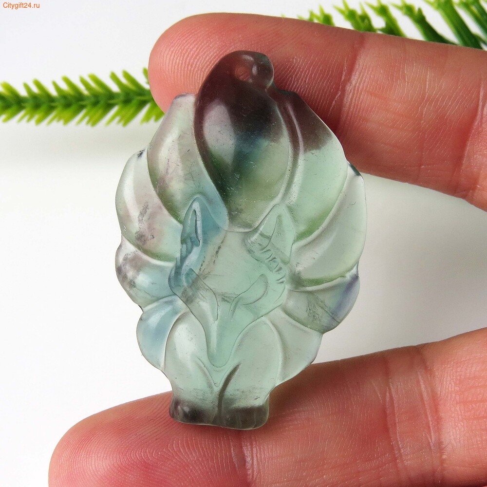 Подвеска резная из флюорита «девятихвостый лис». С тыльной стороны на лапке скол - см. доп. фото.