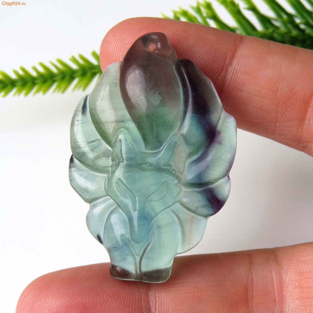Подвеска резная из флюорита «девятихвостый лис».