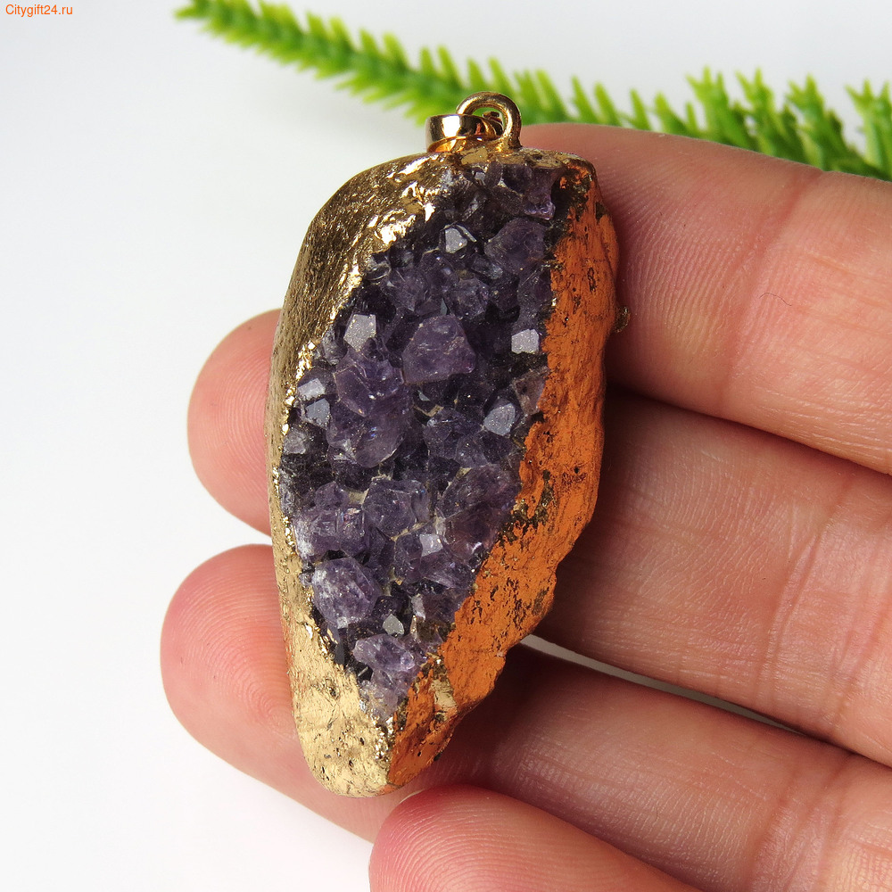 Подвеска аметист с гальваническим покрытием золотого цвета.