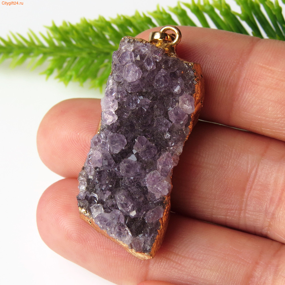 Подвеска аметист с гальваническим покрытием золотого цвета.