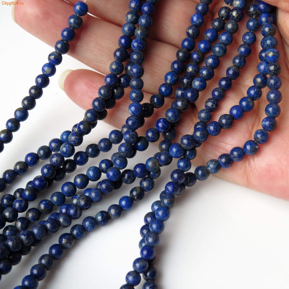 Бусина лазурит натуральный, форма гладкий шар.