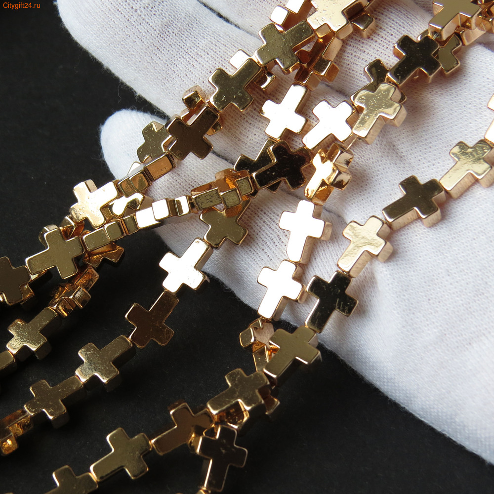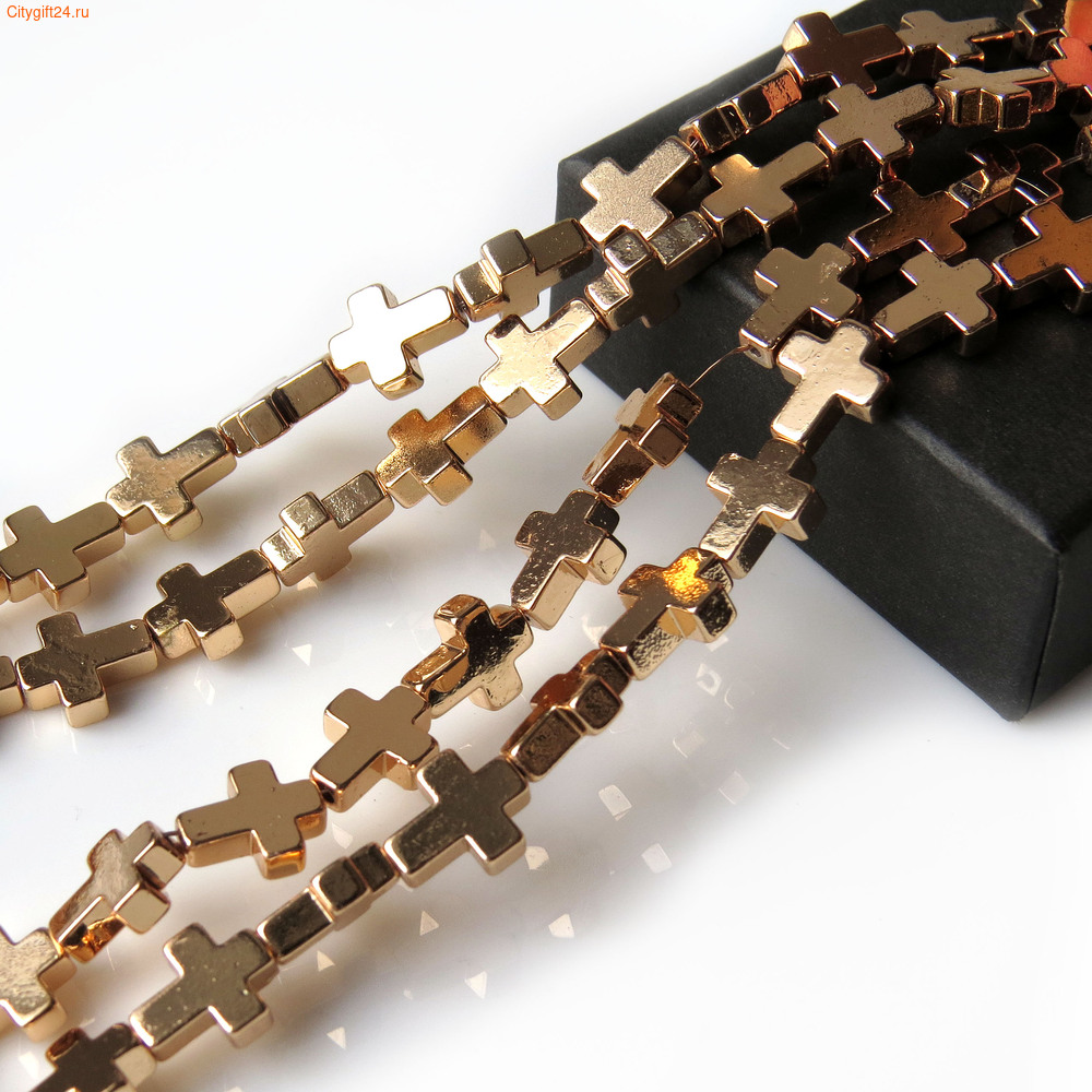 Бусины гематита (имитация), форма крестик.