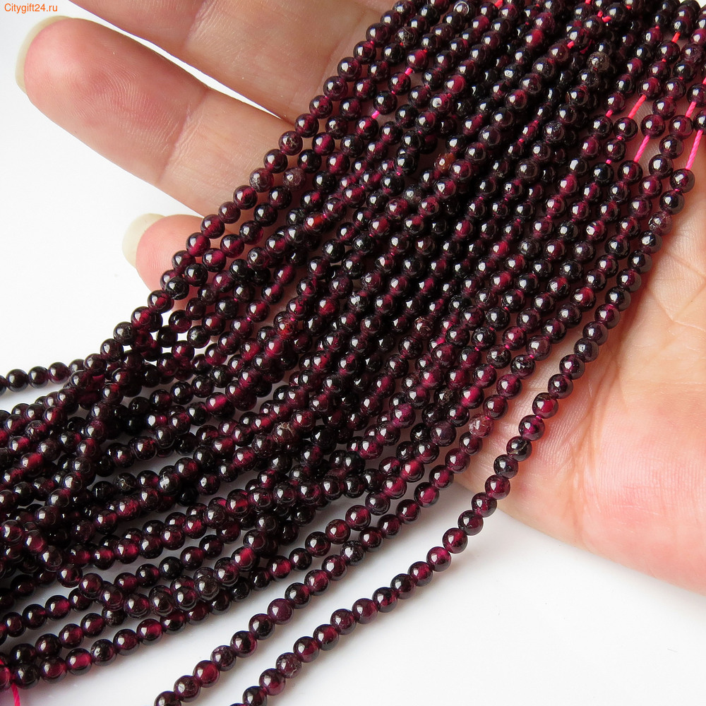 Бусины гранат натуральный (альмандин), применяется для изготовления бижутерии, для декорирования изделий в других видах рукоделия.