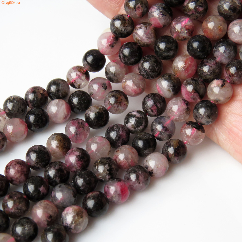 Бусины родонит в кварце. Месторождение - Бразилия.