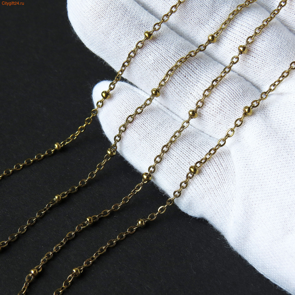Размер: звена 2,5*2*0,5 мм, шарик 3*1,5 мм. Бусина через каждые 20 мм.