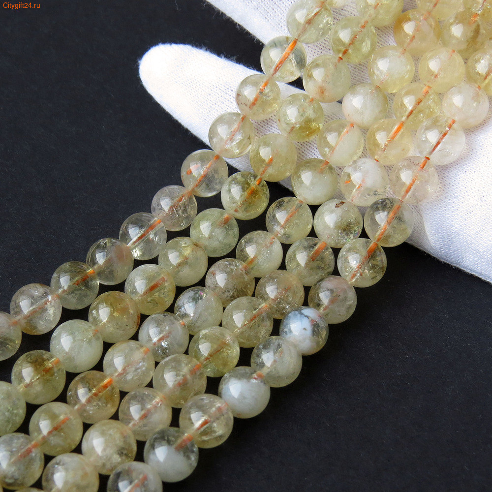 Бусины преимущественно ровные, но могут встречаться небольшие неровности, структурные трещины, каверны, в том числе в районе отверстий. Это характерно для натуральных камней и в данном виде бусин браком не является.