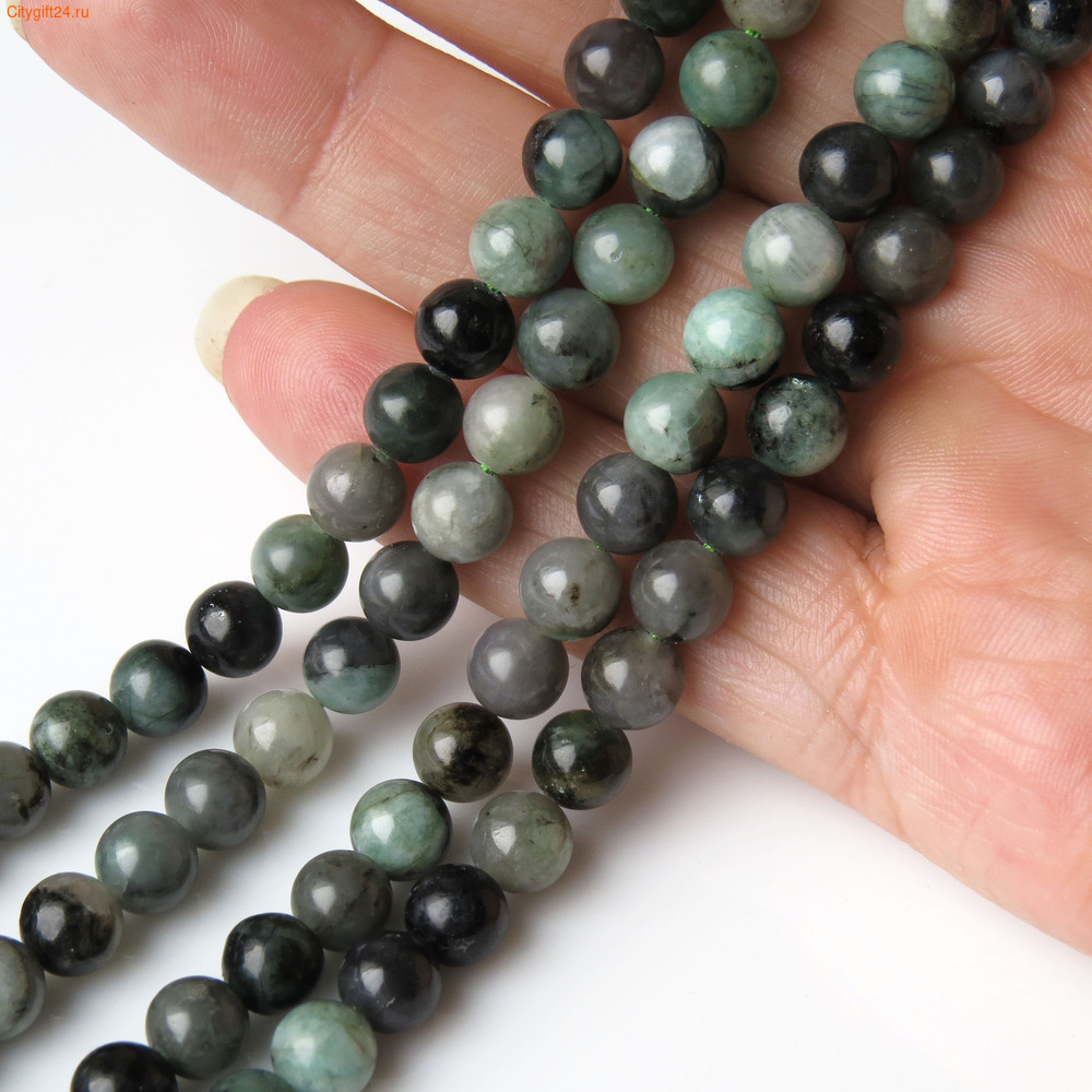 Бусина "камбоджийский изумруд" (зеленый берилл). Форма гладкий шар. Бусины по цветам не выбираем.