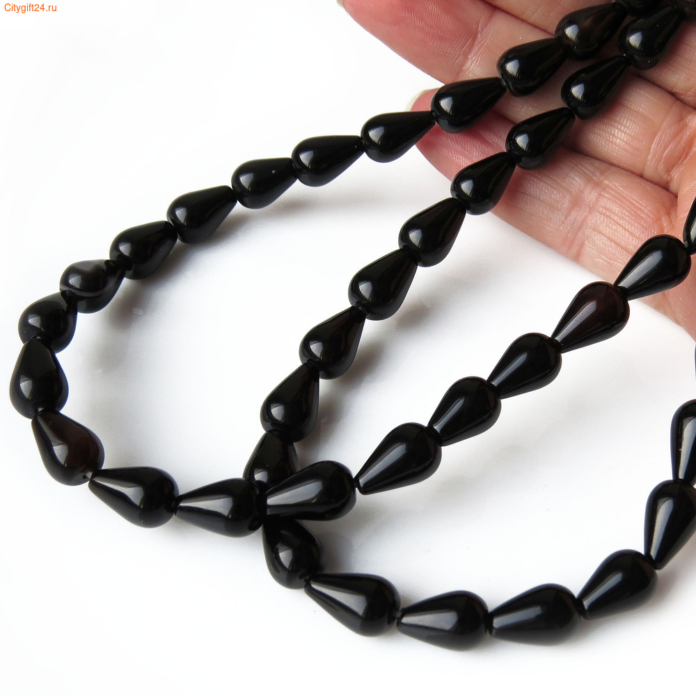 Бусина черный агат натуральный, форма капля.Материал: агат тонированный
