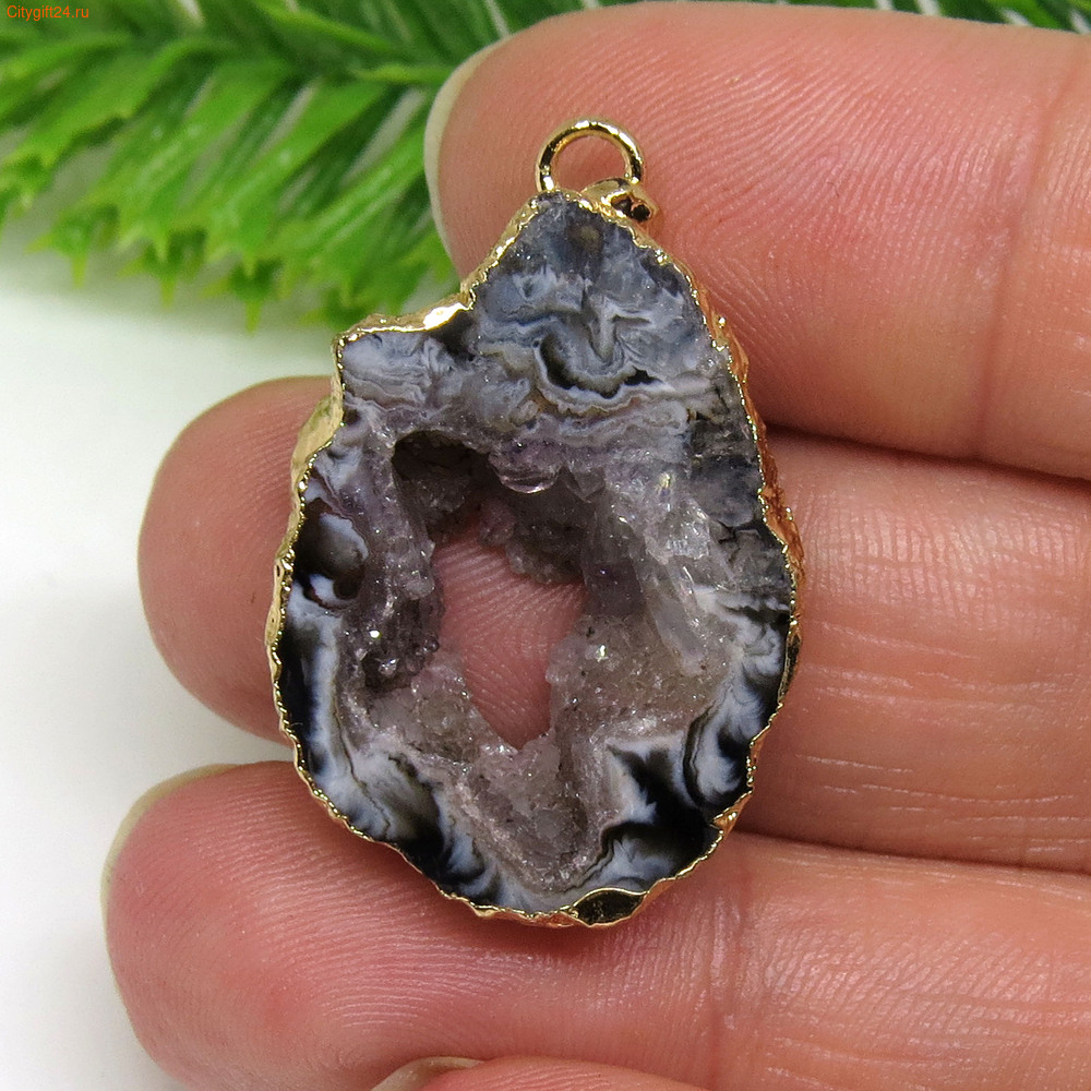 Подвеска бразильский агат с гальваническим покрытием золотого цвета.