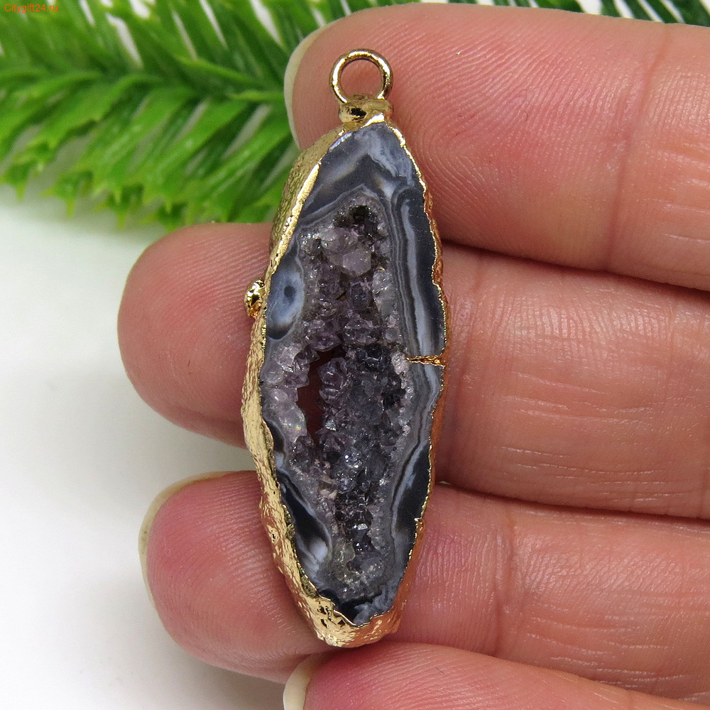 Подвеска бразильский агат с гальваническим покрытием золотого цвета.