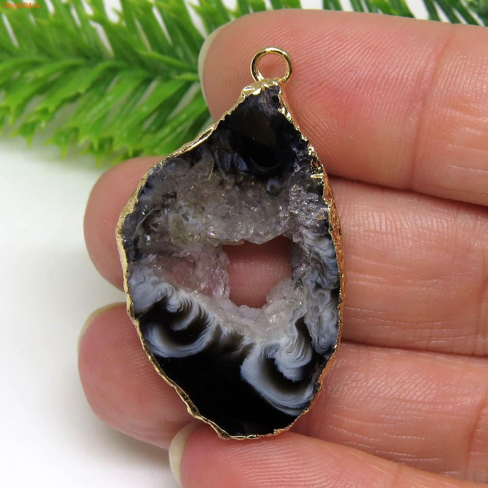 Подвеска бразильский агат с гальваническим покрытием золотого цвета.