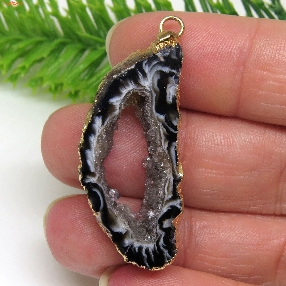 Подвеска бразильский агат с гальваническим покрытием золотого цвета.