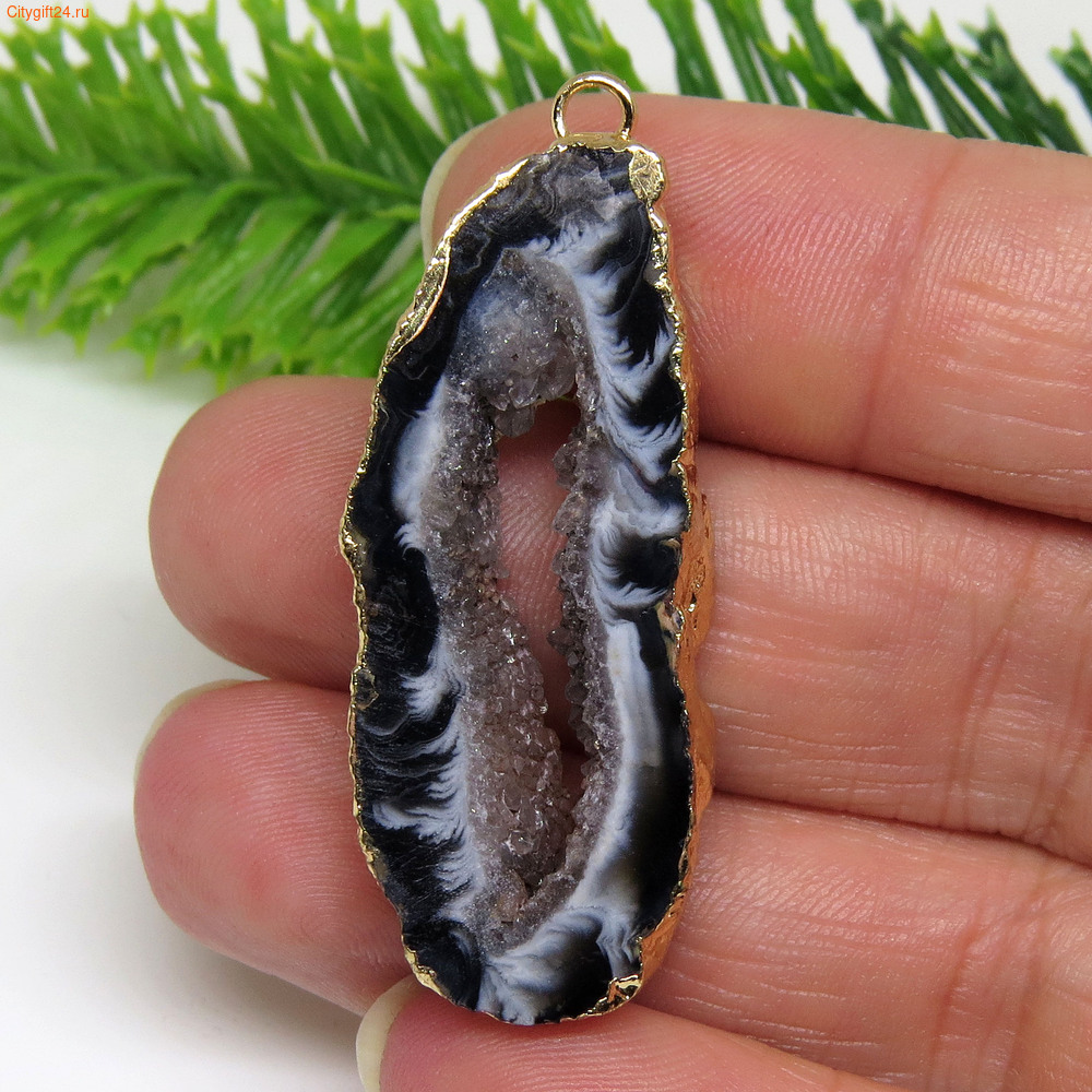 Подвеска бразильский агат с гальваническим покрытием золотого цвета.