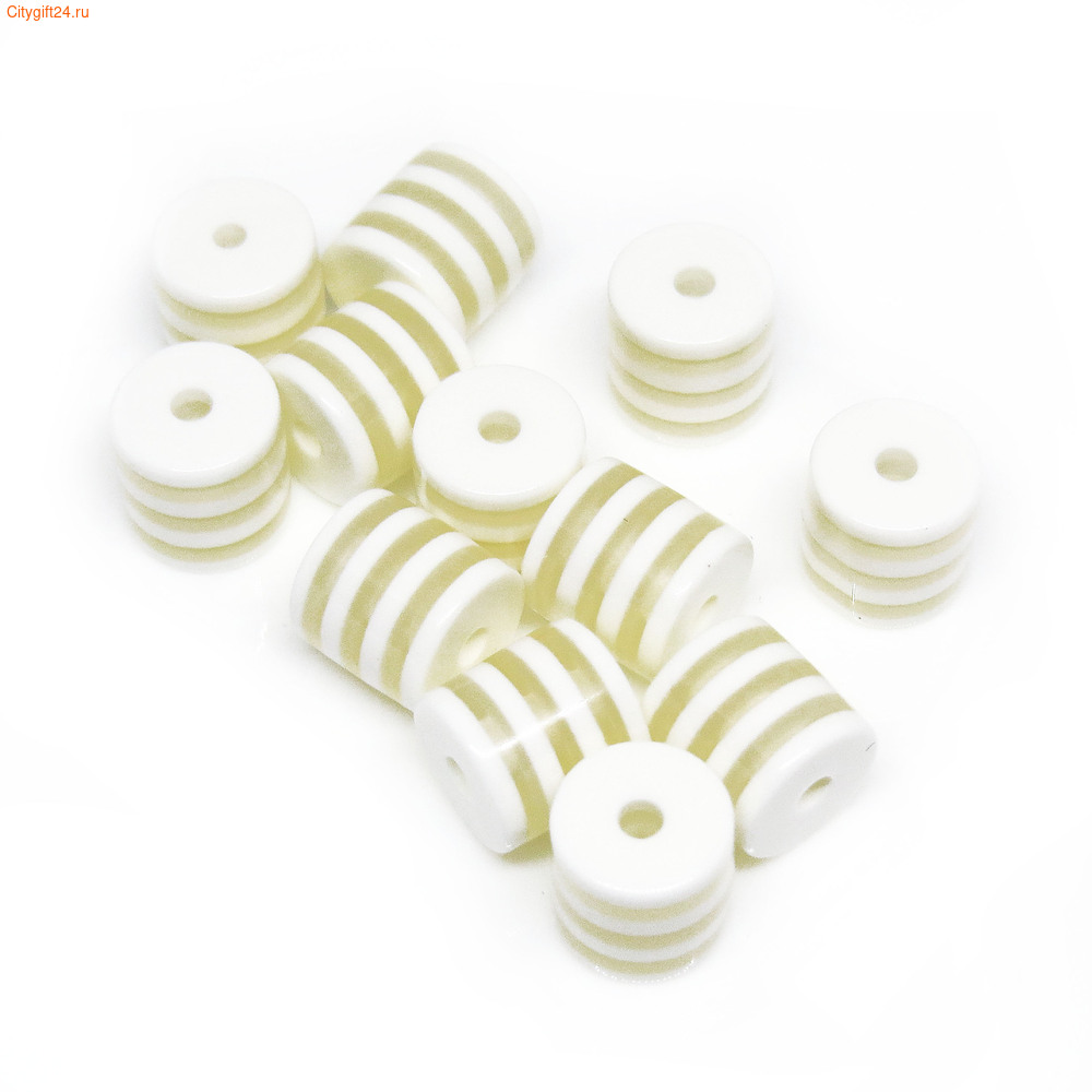 Бусины акриловые полосатые, форма цилиндр. Используются для изготовления бус, браслетов, колье и др. бижутерии, для декоративного украшения одежды, аксессуаров и т.д.